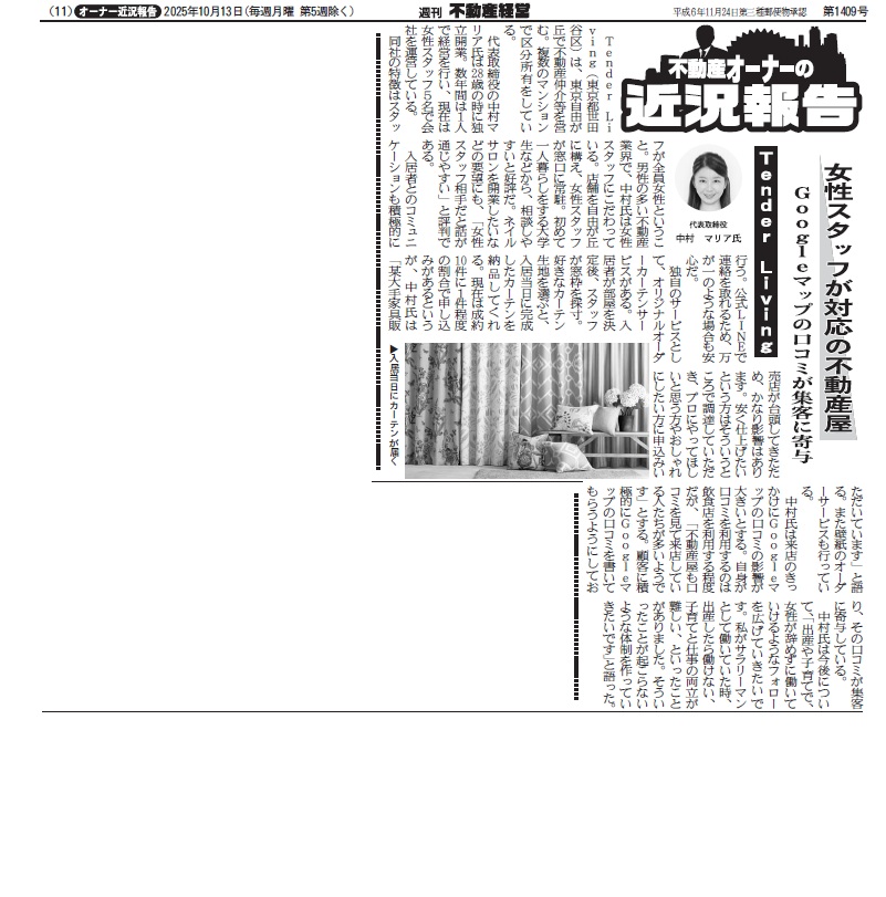 各媒体にて、弊社Tender Living株式会社および代表・中村が紹介されました!